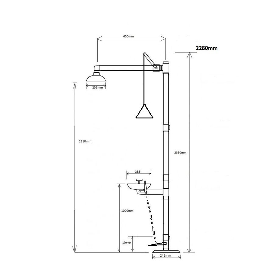 Durchfluss: Augenduschen min. 16l/min oder Körperdusche min. 100l/min